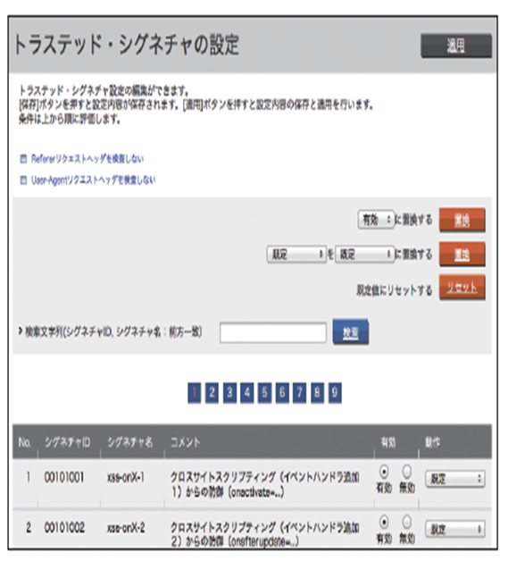 攻撃パターンのデータベースである「トラステッド・シグネチャ」は最適な状態にチューニングして提供されるため、機能を有効にするだけで、すぐに運用を開始できます。